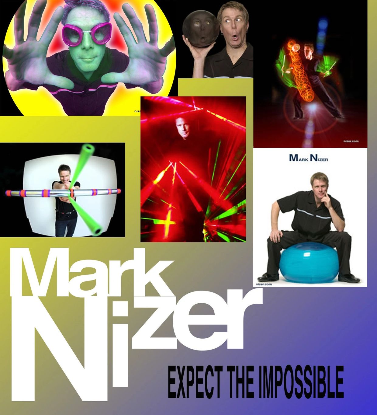Don’t miss the combination of original comedy, world class juggling, movement, music and technology that promises a spellbinding evening. Whether juggling laser beams at 1000 rpms, or five ping pong balls being thrown 20 feet in the air using only his mouth; or even juggling a burning propane tank, a running electric carving knife and a 16-pound bowling ball, you'll discover for yourself that Mark Nizer is truly "the juggler your mother warned you about." Or if she didn't, she should have. Reservations may be obtained by simply scrolling down to the bottom of this page, or clicking on our 'Tickets' tab at the top of the screen :)